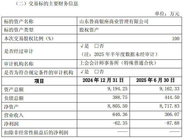 标的银座商管的经营收入主要来源于对集团内部房地产项目进行运营管理,但受国有资本退出房地产板块的政策影响,银座商管近期经营状况并不理想。银座商管2024年净亏损62.35万元。2025年上半年,亏损进一步扩大,净亏损达87.68万元。