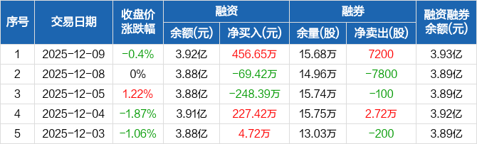 福瑞达:融资净买入456.65万元,融资余额3.92亿元(12-09)