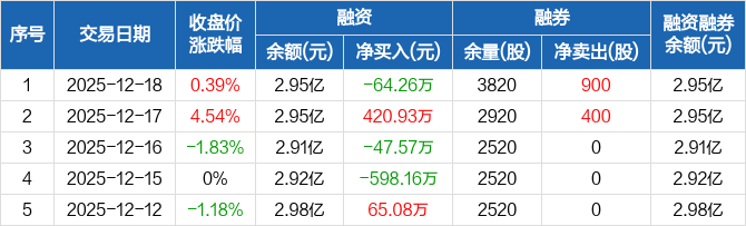 沧州大化:融资净偿还64.26万元,融资余额2.95亿元(12-18)