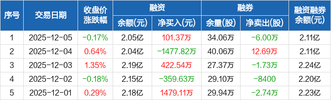 圆通速递:融资净买入101.37万元,融资余额2.05亿元(12-05)