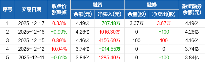 铜峰电子:融资净偿还707.18万元,融资余额4.19亿元(12-17)