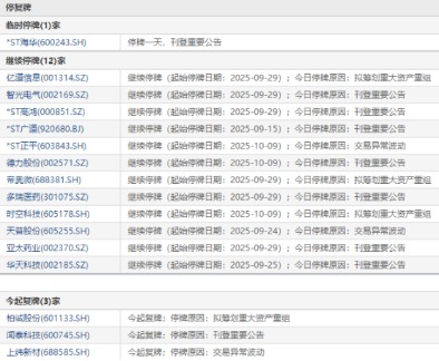 上证报中国证券网讯 10月13日,1家公司临停:*ST海华,3家公司复牌:柏诚股份、闻泰科技、上纬新材。