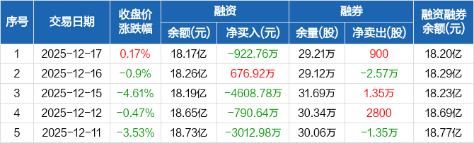 万通发展:融资净偿还922.76万元,融资余额18.17亿元(12-17)
