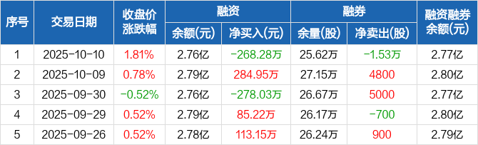 陕建股份:融资净偿还268.28万元,融资余额2.76亿元(10-10)