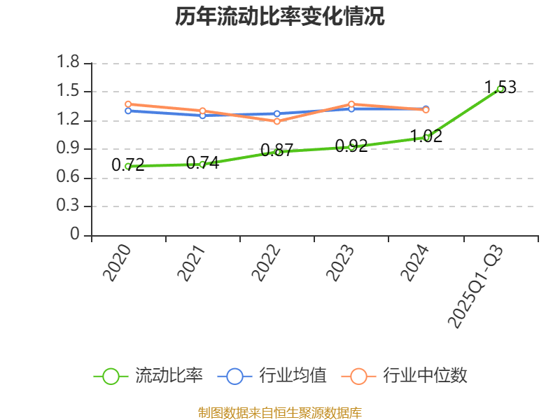 2025年前三季度,公司流动比率为1.53,速动比率为1.42。
