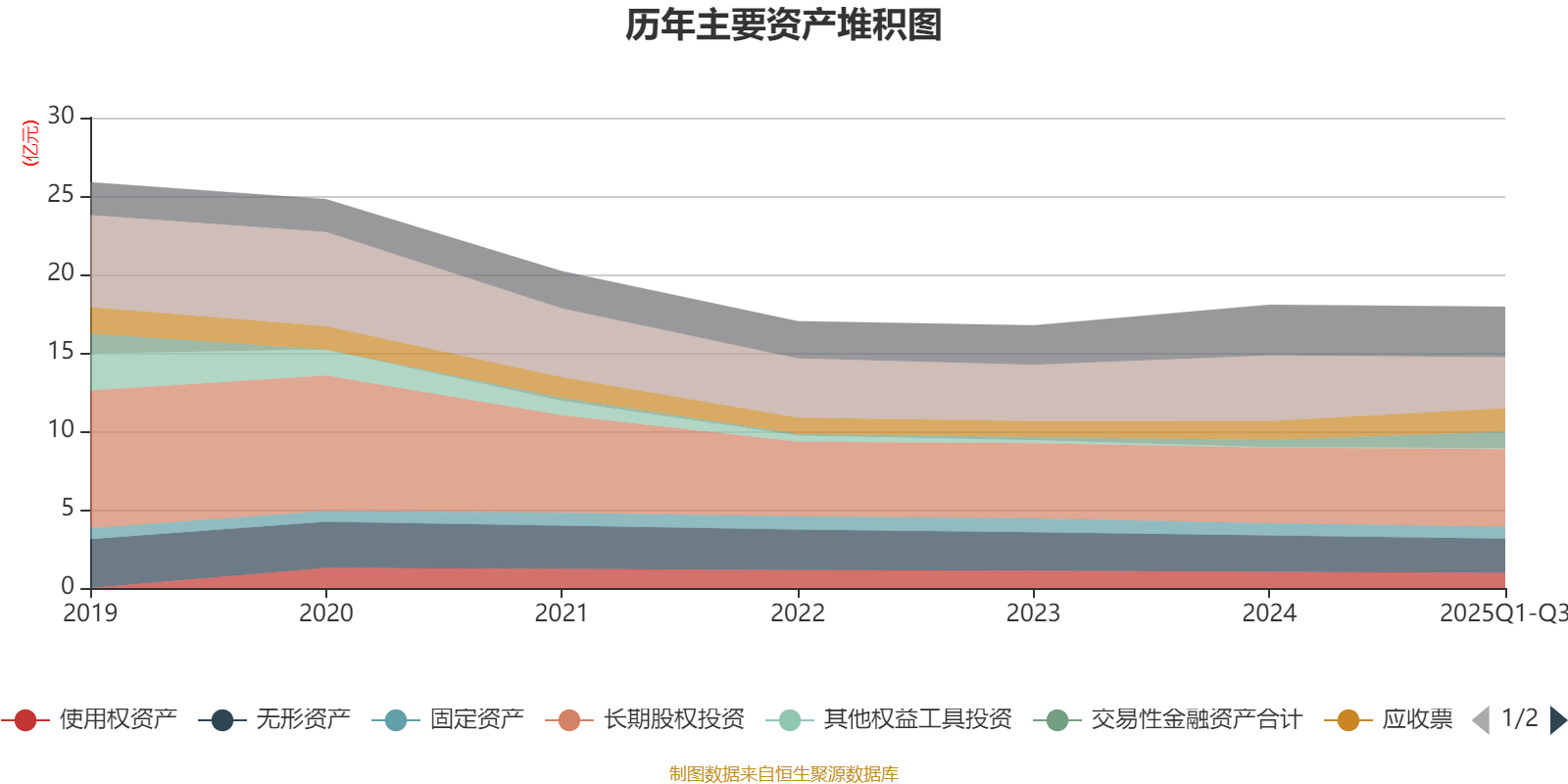 资产重大变化方面,截至2025年三季度末,公司货币资金较上年末减少22.1%,占公司总资产比重下降4.99个百分点;交易性金融资产合计较上年末增加133.53%,占公司总资产比重上升3.37个百分点;其他应收款(含利息和股利)较上年末减少80.16%,占公司总资产比重下降1.69个百分点;应收票据及应收账款较上年末增加23.54%,占公司总资产比重上升1.64个百分点。