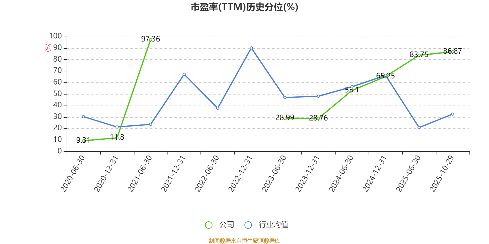 市盈率、市净率为负时,不显示当期分位数,会导致折线图中断。