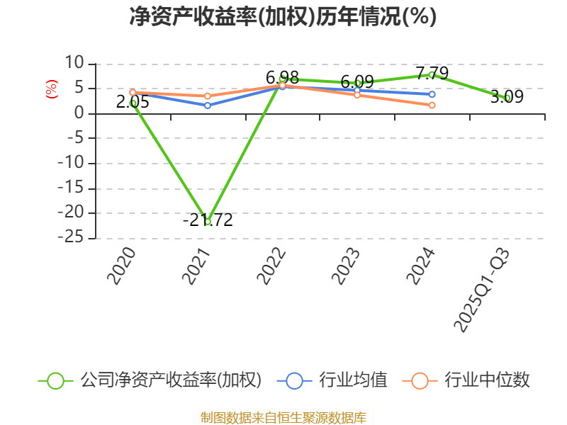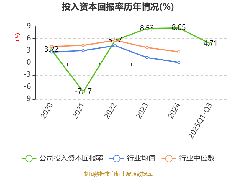 盈利能力方面, 2025年前三季度公司加权平均净资产收益率为3.09%,同比下降3.6个百分点。公司2025年前三季度投入资本回报率为4.71%,较上年同期下降2.31个百分点。