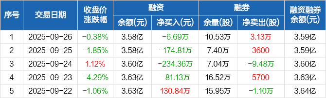中恒集团:连续4日融资净偿还累计496.99万元(09-26)