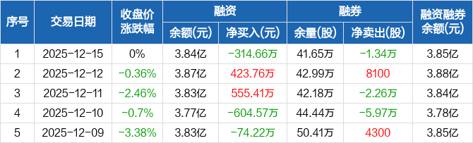 中恒集团:融资净偿还314.66万元,融资余额3.84亿元(12-15)