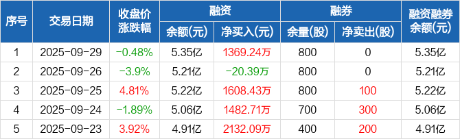 鑫科材料:融资净买入1369.24万元,融资余额5.35亿元(09-29)