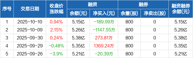 鑫科材料:融资净偿还189.99万元,融资余额5.15亿元(10-10)