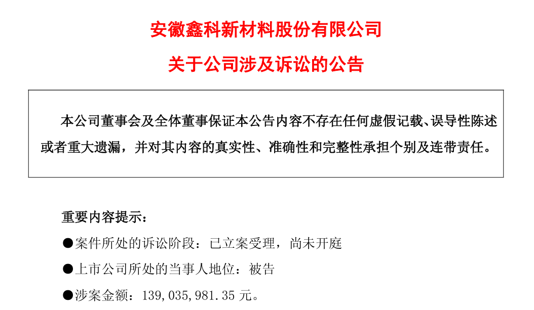 鑫科材料强调,截至本公告披露日,公司尚未最终取得调解协议和经法院审查确认后制作的民事调解书。本案最终结果尚具有不确定性,对公司及控股子公司鑫科铜业、广西鑫科本期利润或期后利润的影响亦存在不确定性。