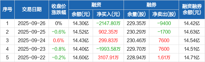 广汇能源:融资净偿还2147.8万元,融资余额14.3亿元(09-26)