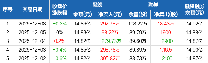 广汇能源:融资净买入292.78万元,融资余额14.86亿元(12-08)