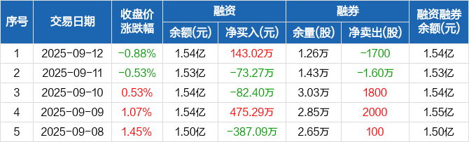 大湖股份:融资净买入143.02万元,融资余额1.54亿元(09-12)