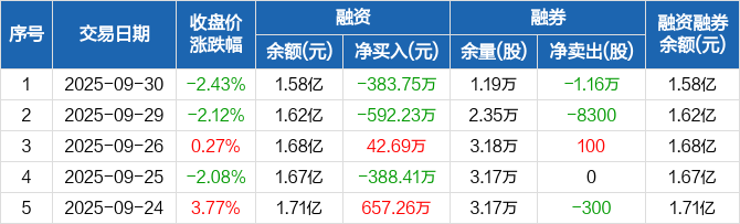 阳光照明:融资净偿还383.75万元,融资余额1.58亿元(09-30)