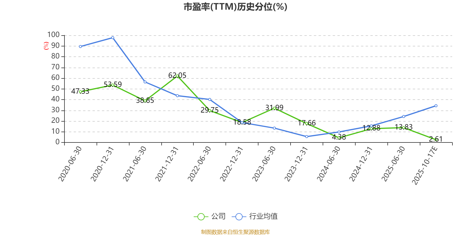 市盈率、市净率为负时,不显示当期分位数,会导致折线图中断。