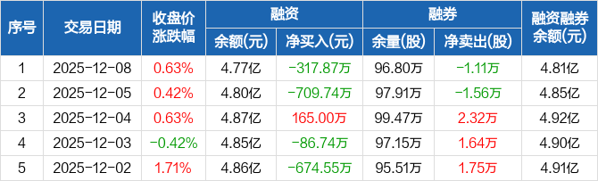 城建发展:融资净偿还317.87万元,融资余额4.77亿元(12-08)