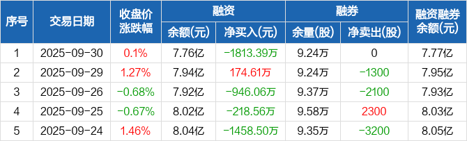 海正药业:融资净偿还1813.39万元,融资余额7.76亿元(09-30)