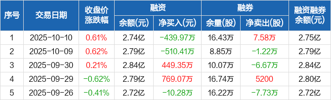 赣粤高速:融资净偿还439.97万元,融资余额2.74亿元(10-10)