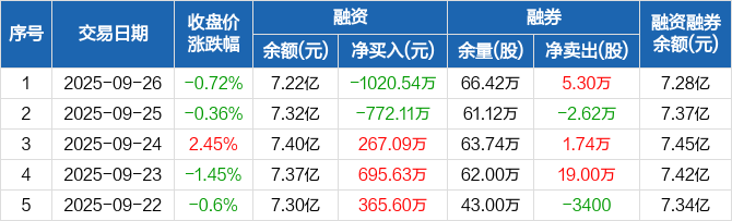 航天信息:融资净偿还1020.54万元,融资余额7.22亿元(09-26)