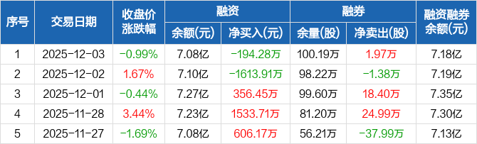 航天信息:融资净偿还194.28万元,融资余额7.08亿元(12-03)