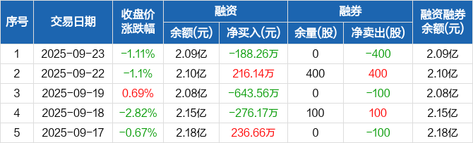 东方创业:融资净偿还188.26万元,融资余额2.09亿元(09-23)