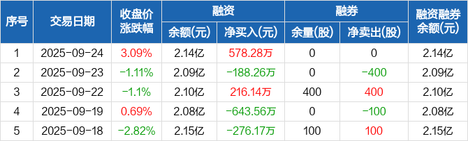 东方创业:融资净买入578.28万元,融资余额2.14亿元(09-24)