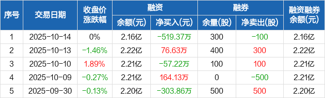 东方创业:融资净偿还519.37万元,融资余额2.16亿元(10-14)