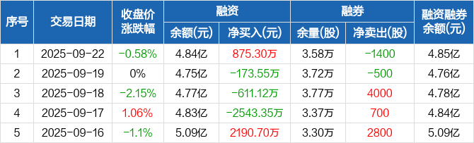 羚锐制药:融资净买入875.3万元,融资余额4.84亿元(09-22)