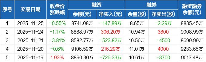 鄂尔多斯:融资净偿还147.89万元,融资余额8741.08万元(11-25)