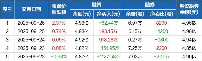 安琪酵母:融资净偿还62.44万元,融资余额4.93亿元(09-26)
