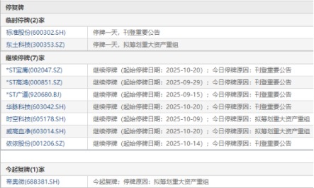 上证报中国证券网讯 10月21日,2家公司临停:标准股份、东土科技,1家公司复牌:帝奥微。