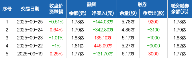 恒顺醋业:融资净偿还144.03万元,融资余额1.78亿元(09-25)