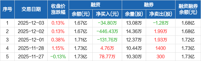 恒顺醋业:连续3日融资净偿还累计612.99万元(12-03)