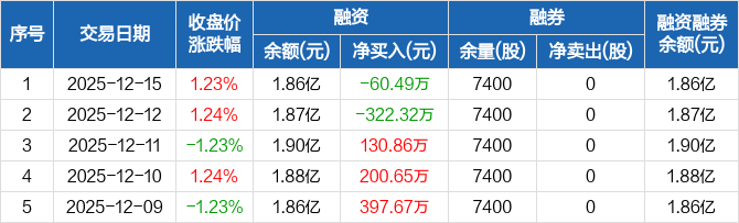酒钢宏兴:融资净偿还60.49万元,融资余额1.86亿元(12-15)