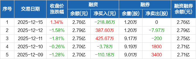 华泰股份:融资净偿还218.86万元,融资余额2.76亿元(12-15)