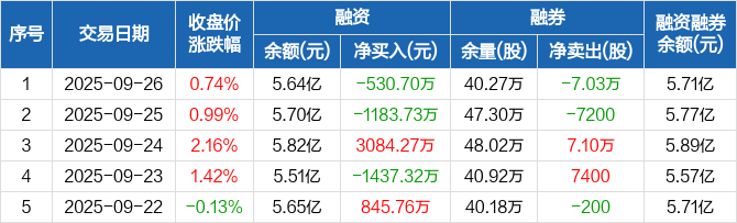 平高电气:融资净偿还530.7万元,融资余额5.64亿元(09-26)