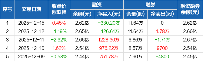 农发种业:融资净偿还330.2万元,融资余额2.62亿元(12-15)