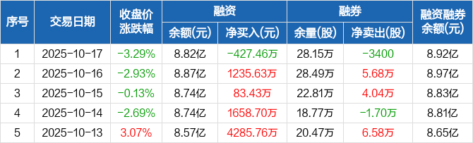 洪都航空:融资净偿还427.46万元,融资余额8.82亿元(10-17)