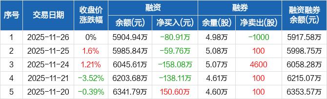 津投城开:融资余额5904.94万元,创近一年新低(11-26)
