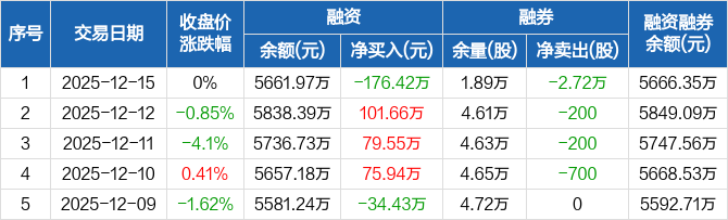 津投城开:融资净偿还176.42万元,融资余额5661.97万元(12-15)