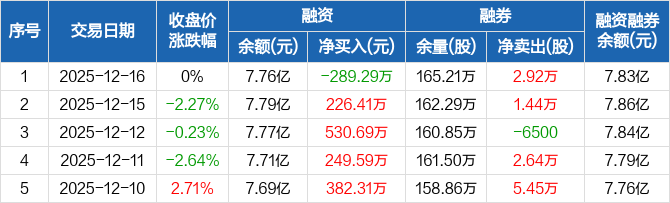 华发股份:融资净偿还289.29万元,融资余额7.76亿元(12-16)