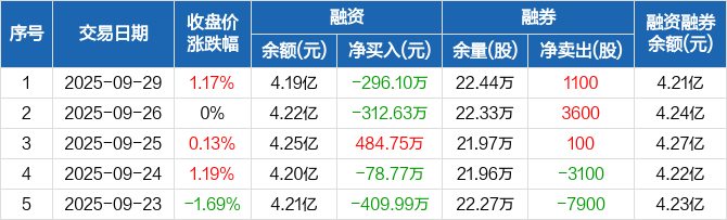 中盐化工:融资净偿还296.1万元,融资余额4.19亿元(09-29)