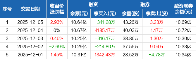 宏达股份:融资净偿还341.28万元,融资余额10.64亿元(12-05)