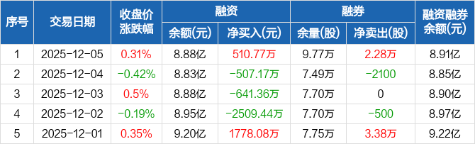 白云山:融资净买入510.77万元,融资余额8.88亿元(12-05)