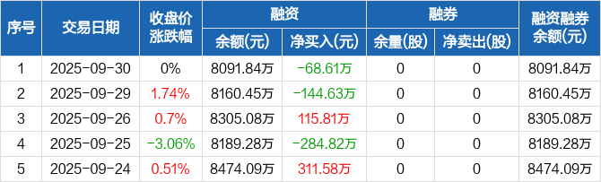 长春燃气:融资净偿还68.61万元,融资余额8091.84万元(09-30)