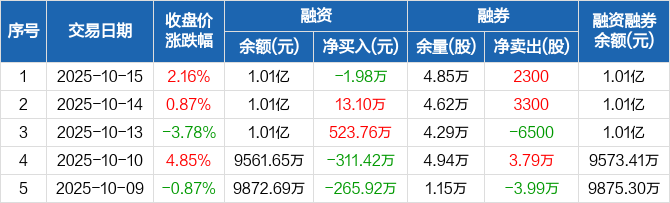 美克家居:融资净偿还1.98万元,融资余额1.01亿元(10-15)