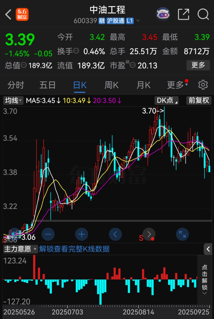 中油工程最新签署的项目合同金额,接近其最新市值。截至9月25日收盘,中油工程股价报3.39元/股,总市值为189.3亿元。